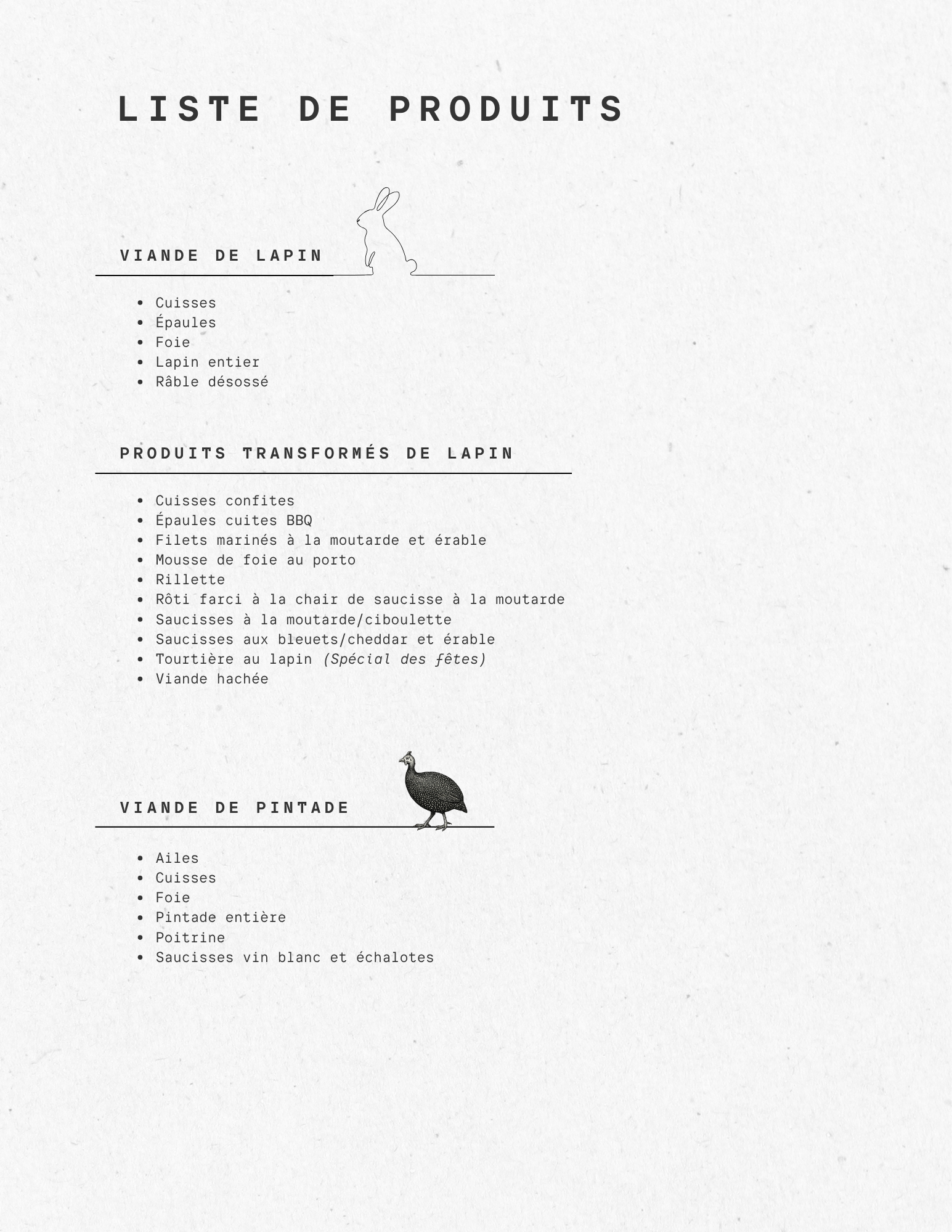 Producteurs de lapins de chair et pintades Saucisses de lapin Rillette Viande hachée de lapin Cuisse confite de lapin Produits Épaules Viande hachée de lapin produits produits produits